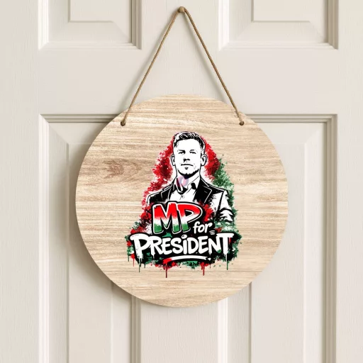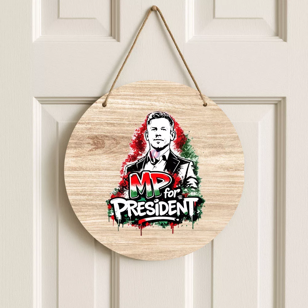 Magyar Péter for President - ajtódísz 30 cm, fa, akasztható kedvező áron. Vásároljon prémium minőségű egyedi, névre szóló dekorációs kiegészítők széles választékából!