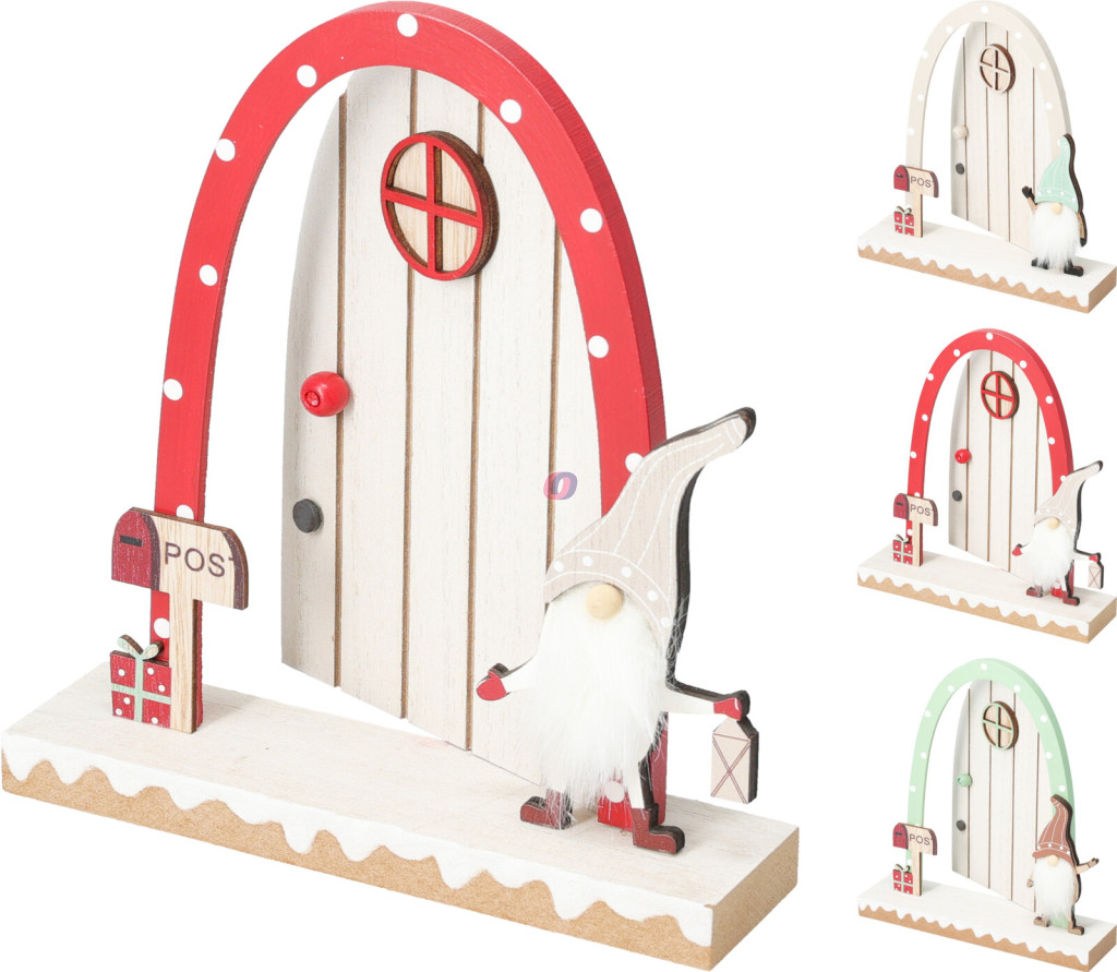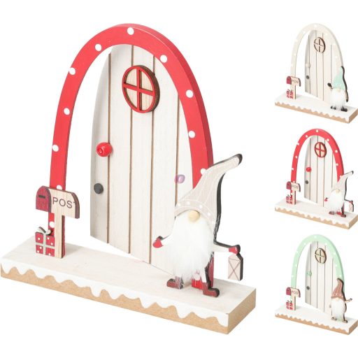 A mágneses rögzítésű manó és ajtó kombináció nemcsak hangulatos, hanem praktikus dekoráció is, hiszen könnyen elhelyezhető és stabilan áll. Remek választás karácsonyi kompozíciókhoz, polcra vagy bejárati dekorációnak.
