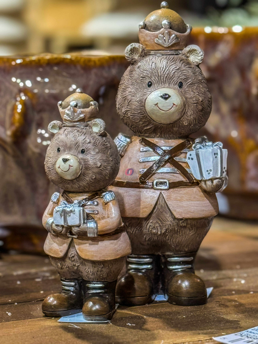 Medve ruhában fenyővel, ajándékkal álló poly 6,5x5x13,5 cm barna 2 féle |