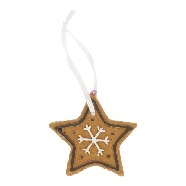 Mézeskalács csillag akasztós poly 6,4x0,7x6,4 cm barna, fehér |