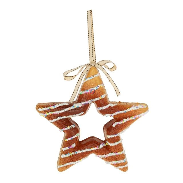 Mézeskalács csillag cukormázzal, akasztós polyfoam 21x21x2,5 cm barna, fehér |