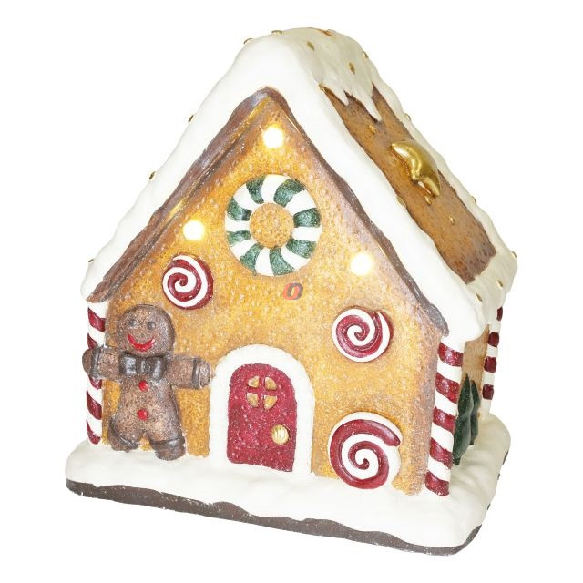 Mézeskalács ház LED-es magnézia 37x26x40,5 cm barna, fehér |