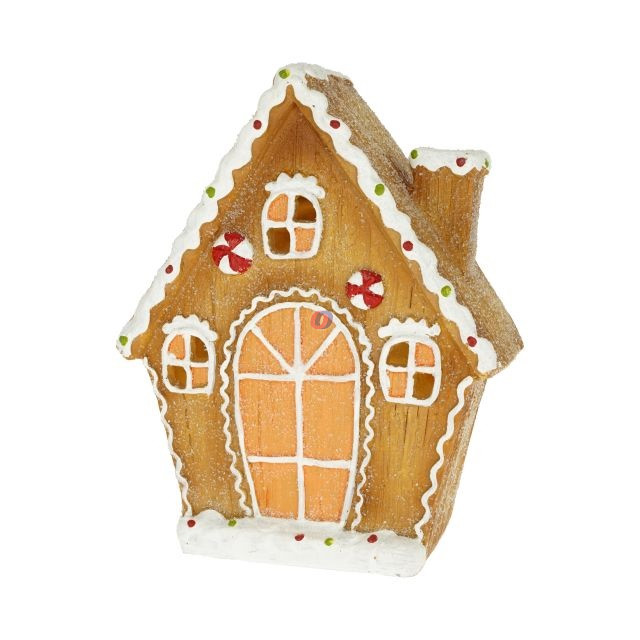Mézeskalács ház LED-es poly 19,9x9,5x23 cm barna, fehér |