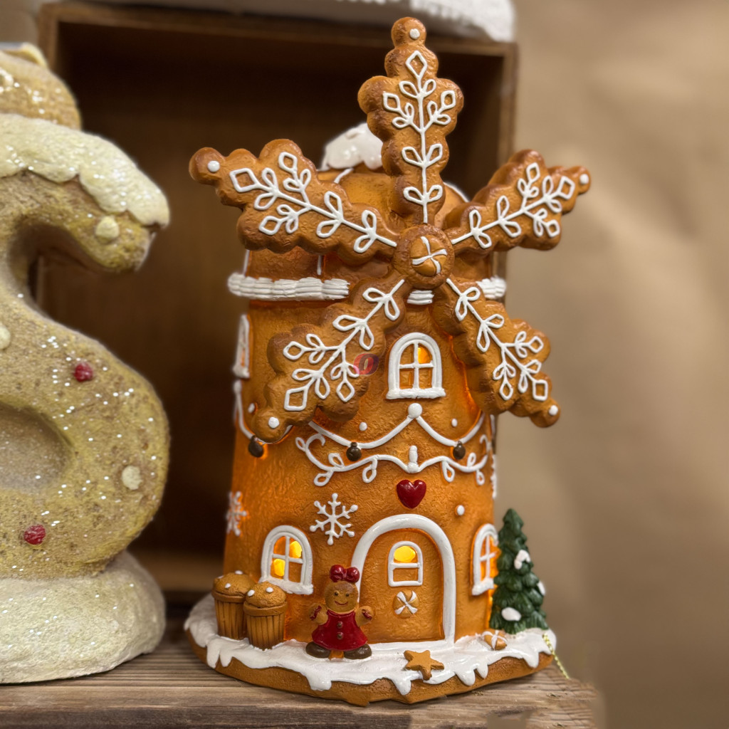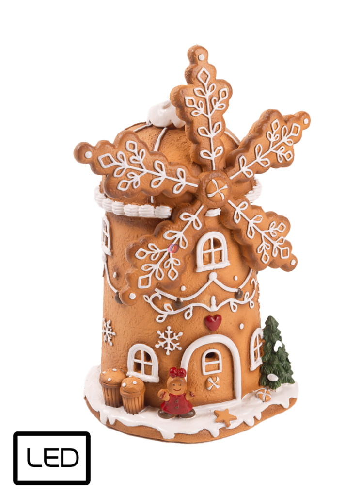 A „Mézeskalács szélmalom, hópihével LED-es 14*21 cm dekoráció klasszikus karácsonyi hangulatot teremt. Részletgazdag megjelenése azonnal a figyelem középpontjába kerül.