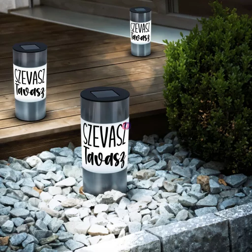 Tegye különlegessé kertjét ezzel a feliratos rozsdamentes LED-es szolár lámpával. Használhatja irányfényként vagy dekorációként is a szabadban. A leszúró tüske segítségével gyorsan és egyszerűen el tudja helyezni. Amint besötétedik, a lámpa automatikusan bekapcsol, napkeltekor pedig kikapcsol. Napközben a szolárcellák a napenergiát árammá alakítják és az akkumulátorban eltárolják.