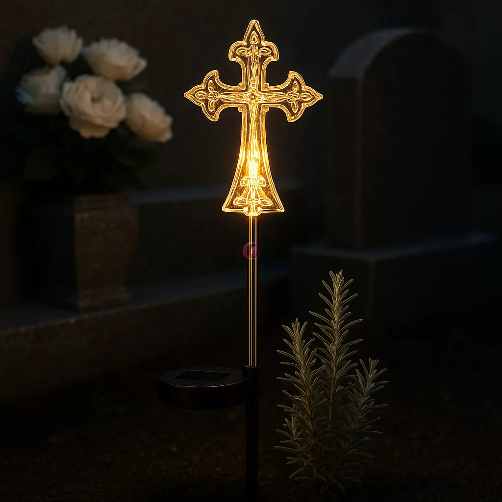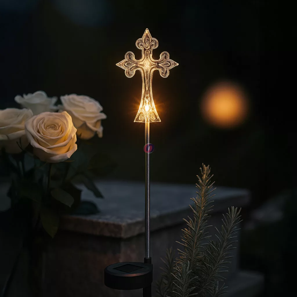 Tedd meghitté az emlékezés pillanatait ezzel a napelemes világító emlékkereszttel, amely nappal feltöltődik, éjszaka pedig meleg, lágy fényt áraszt, hogy méltó módon őrizze meg szeretteink emlékét.