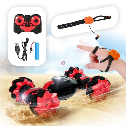 Ez a gesztusvezérelhető távirányítós játékautó tökéletes ajándék gyermekek számára, akik imádják az izgalmas, kreatív játékokat! Az 1:16 méretarányú autó kéttónusú fényezéssel rendelkezik, strapabíró kialakításának köszönhetően könnyedén ellenáll a kalandok kihívásainak. Az autó a kézfejre rögzíthető egység segítségével gesztusvezérelhető is, de használható a tartozék távirányító is az irányításra. Ez a játékautó nemcsak szórakoztató, hanem a gyermekek kézügyességét, reakcióidejét és koordinációját is fejlesztheti.