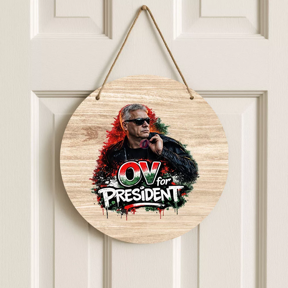 Orbán Viktor for President - ajtódísz 30 cm, fa, akasztható kedvező áron. Vásároljon prémium minőségű egyedi, névre szóló dekorációs kiegészítők széles választékából!