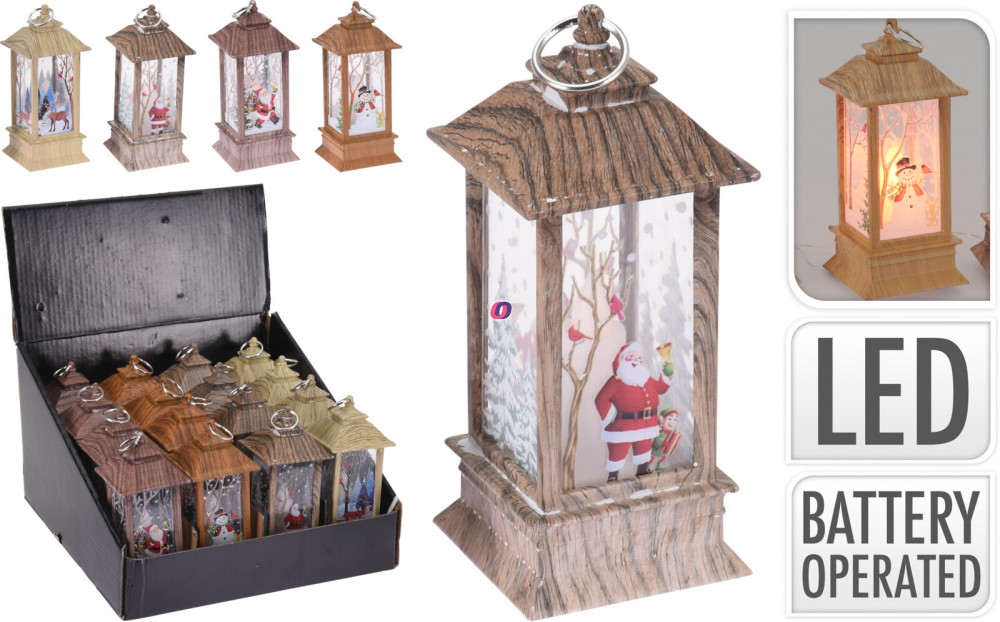 Prémium Fa hatású Lámpás 13 cm LED világtással, elemes 4 féle választható kivitelben