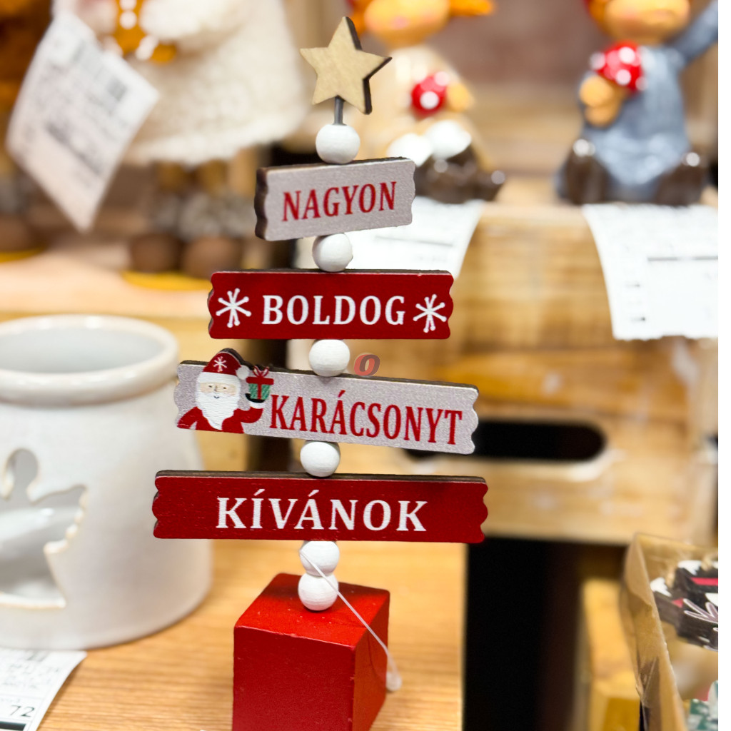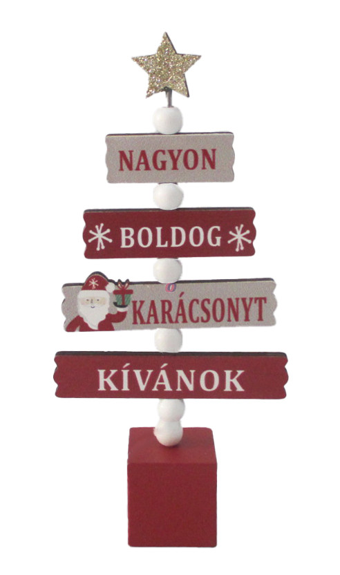 Prémium Karácsonyi dísz fa "Nagyon Boldog karácsonyt" 17 cm piros, natúr