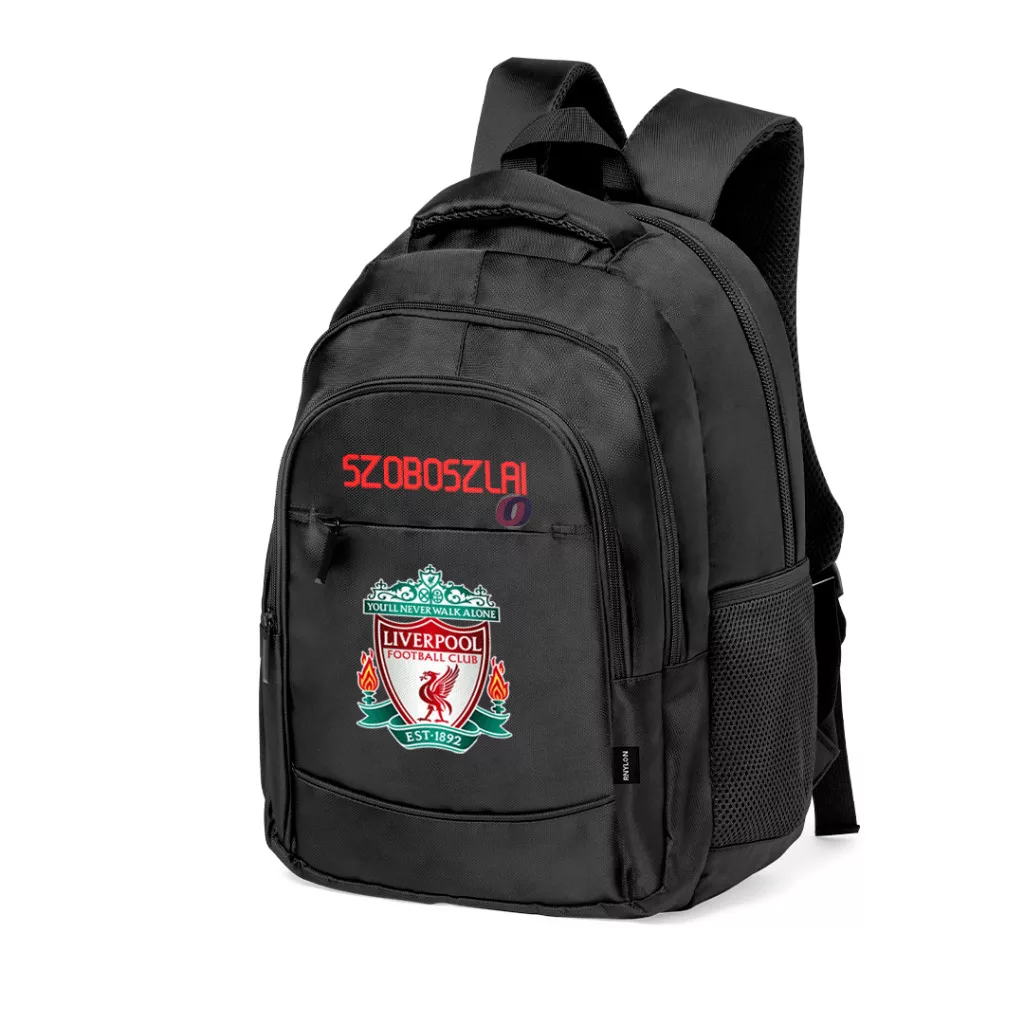 Prémium Liverpool Iskolatáska személyre szabható, egyedi névvel, "Szoboszlai" Fekete, ami szuper kiegészítője lesz a mindennapoknak, túrázásoknak, sport tevékenységeidnek, de akár Suliba is viheted Méretének köszönhetően. Prémium grafika és anyag.