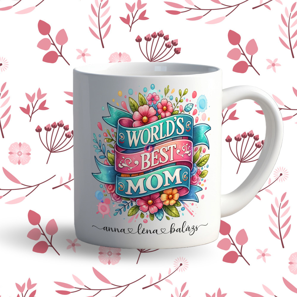 Prémium egyedi neves bögre anyák napjára "Worlds best Mom"