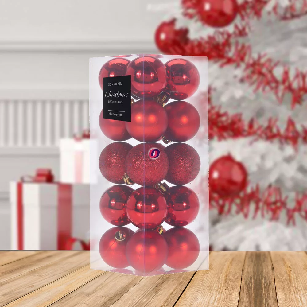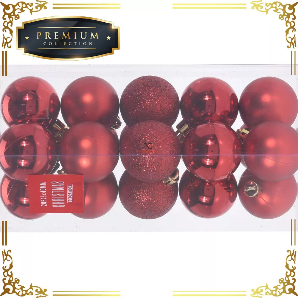 Premium collection dísz műanyag piros 4cm 20 db-os karácsonyfa gömb szett kedvező áron, azonnal, raktárról. Vásároljon prémium minőségű dekorációs kellékeket webáruházunkból!