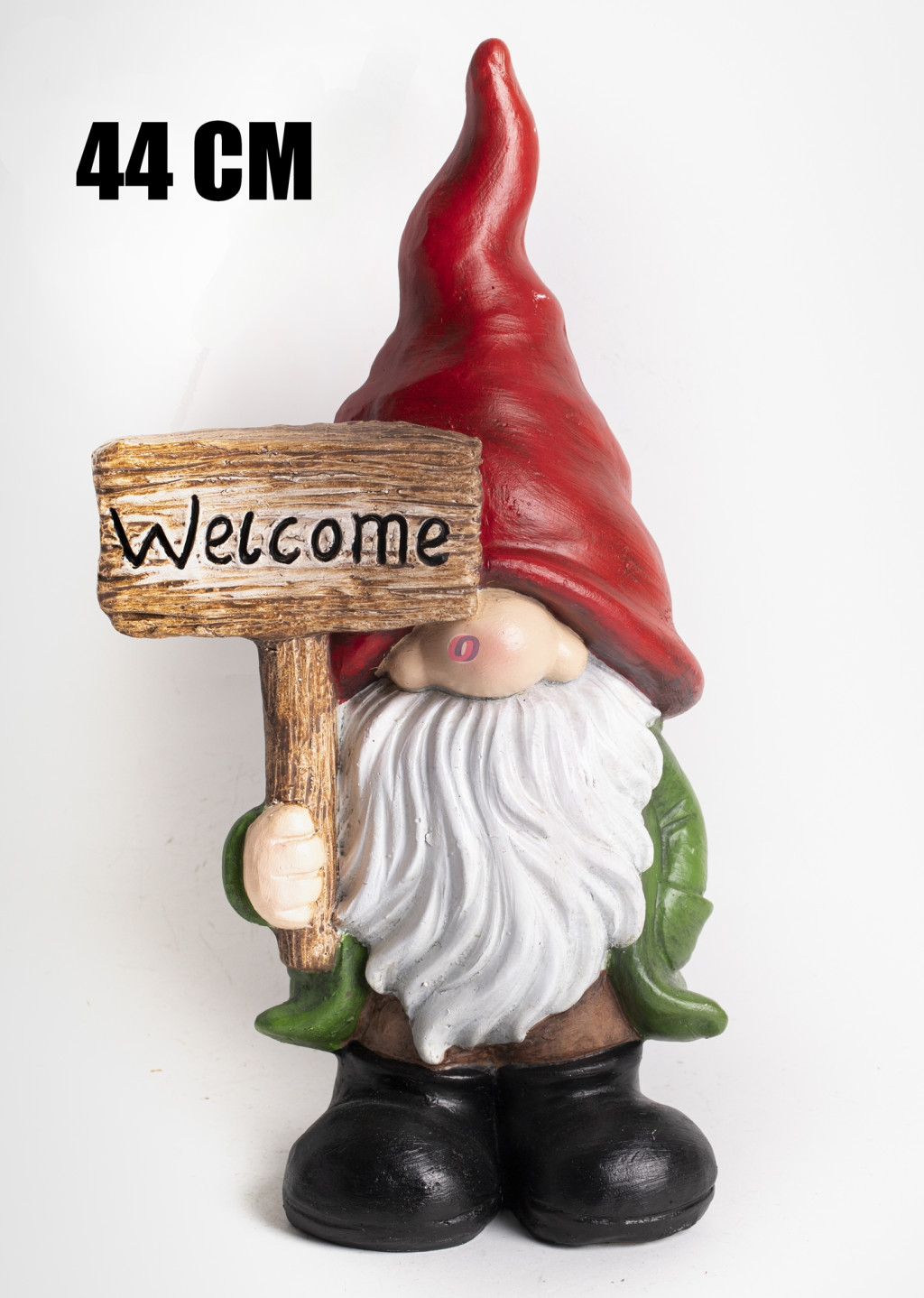 Prémium kerti manó piros sapkában, welcome táblával 44 cm polystone tökéletes választás lesz az autentikus őszi hangulat megteremtéséhez.