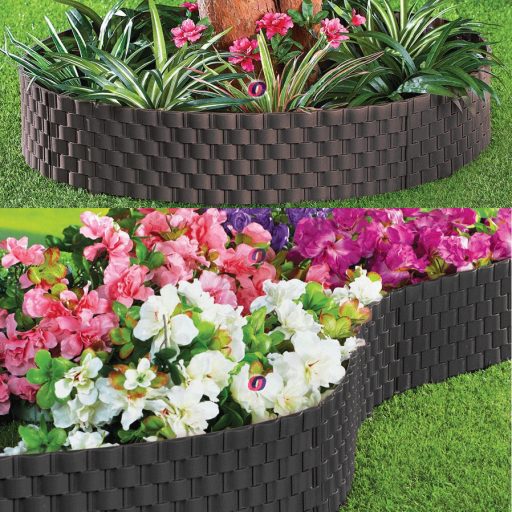 Alakítson ki kertjében csodálatos kerti ösvényeket és utakat, vagy határolja el a virágágyását ezzel az elegáns modern rattan virágágyás kerítéssel. Az elemeknek köszönhetően szinte bármilyen formát létre tud hozni, akár szabályos kör alakot is. Kiválóan alkalmas pázsitok, sziklakertek virágoskertek és kerti utak határolására. Igazi különleges ágyásszegély, amivel különlegessé teheti kertjét és virágoskertjét