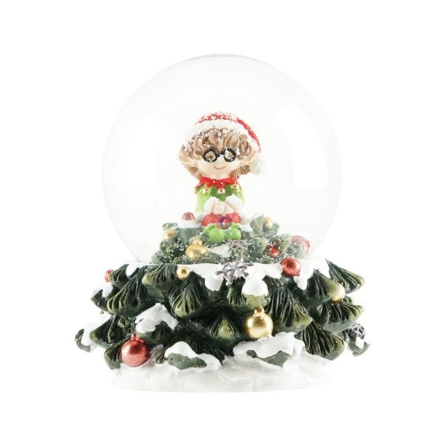 A „Rázógömb, karácsonyfán ülő manóval, zenélő poly, üveg 15x12 cm színes” dekoráció klasszikus karácsonyi hangulatot teremt. Részletgazdag megjelenése azonnal a figyelem középpontjába kerül.