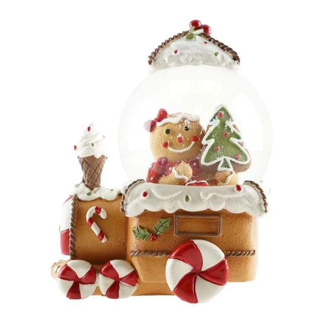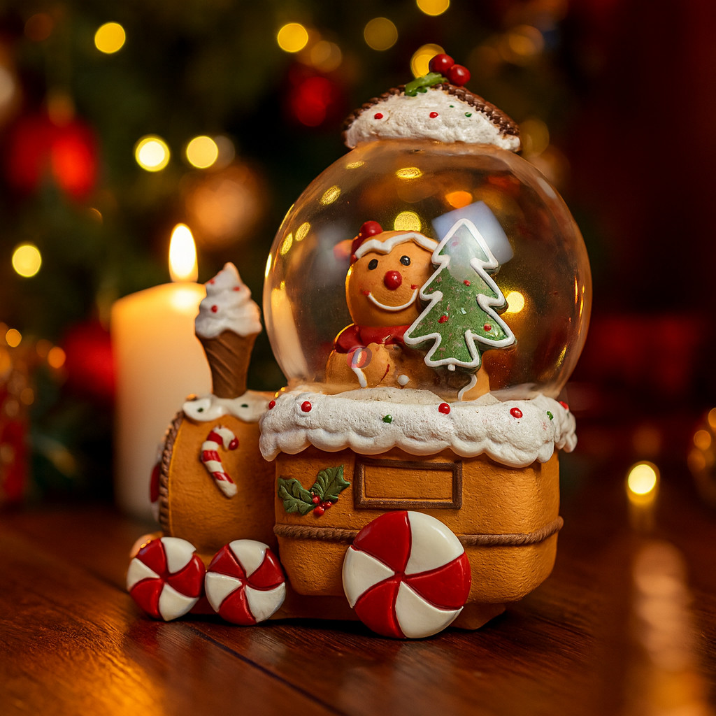 A „Rázógömb kisvonaton” mézeskaláccsal díszítve igazi karácsonyi különlegesség. A színes kisvonat játékos és ünnepi hangulatot sugároz, a gömb belsejében hulló hó pedig varázslatos téli világot teremt. Különleges részleteinek köszönhetően tökéletes kiegészítője az ünnepi dekorációnak, és ajándékként is biztosan örömet okoz.
