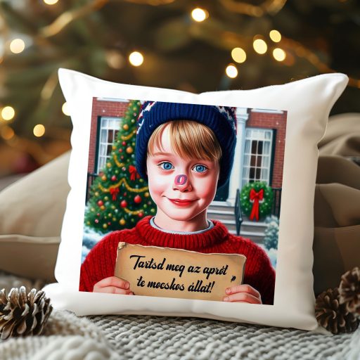 Reszkessetek betörők Párnahuzat "Tartsd meg az aprót" 40x40 cm. Kiváló minőségű Karácsonyi dekorációs kiegészítő, de szuper ajándék is lehet