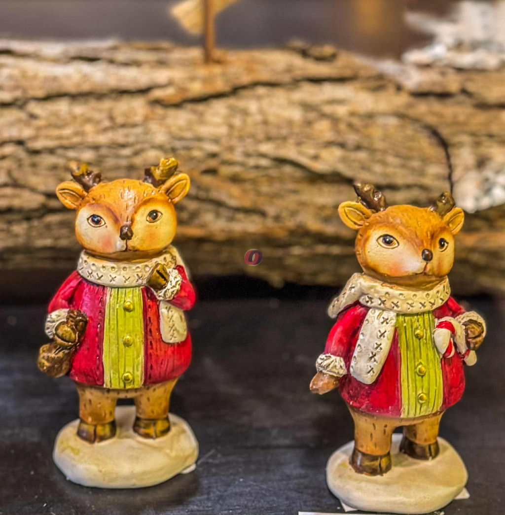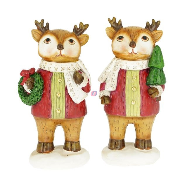 Szarvas fenyővel, koszorúval álló poly 5,5x4,5x12,5 cm barna, piros 2 féle |