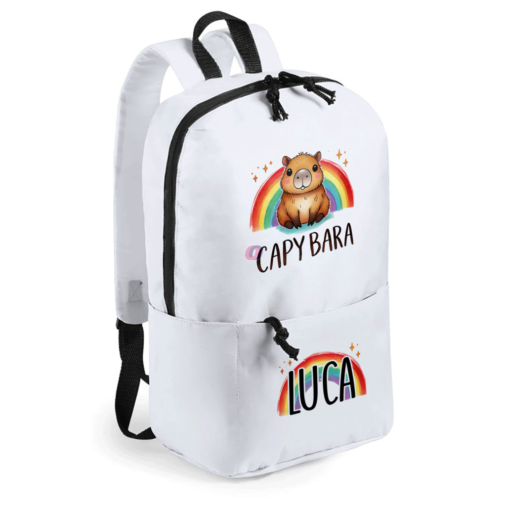 Személyre szabható Capybara Hátizsák "Rainbow", egyedi névvel, fehér 23x36 cm