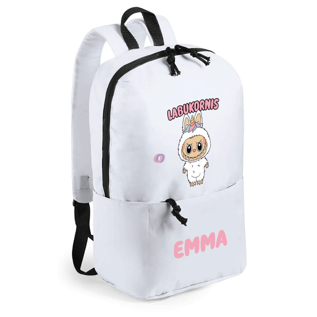 Személyre szabható Labubu "Labukornis" Hátizsák, egyedi névvel, fehér 23x36 cm