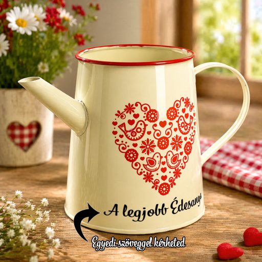 Személyre szabható fém kaspó, kancsó, szív mintával, egyedi felirattal 27 cm. Kiváló minőségű dekorációs kiegészítő tavaszi, húsvéti szezonban