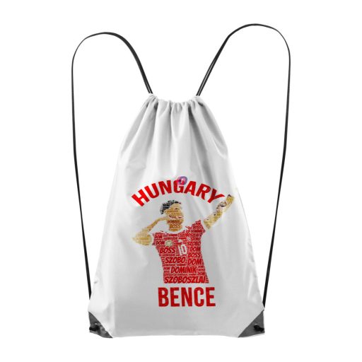 Személyre szabható tornazsák - Szoboszlai D. fehér Limitált. Ez a limitált kiadású egyedi tervezésű hátizsák szuper kiegészítője lesz a sporttevékenységnek, vagy túrázásnak vagy akár a meccsre is viheted magaddal, mert ezt a méretet még beengedik.