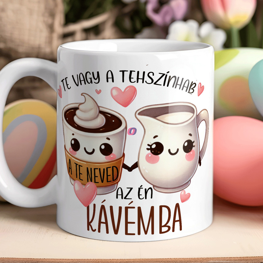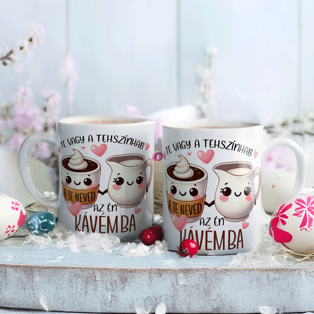 - Egyedi feliratos Valentin bögre "Te vagy a tejszínhab a kávémba"