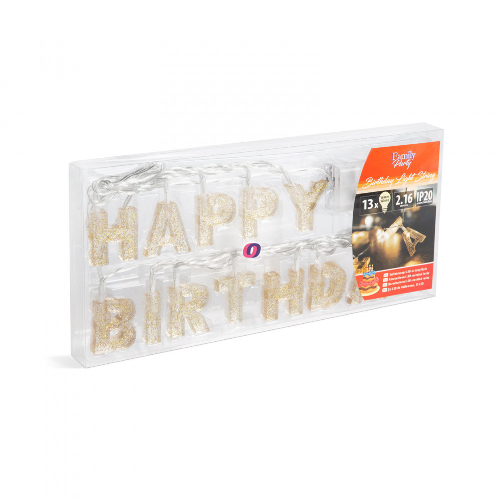 Emelje magasabb szintre a születésnapi bulik, zsúrok dekorációját ezzel a LED-es fényfüzérrel. A "Happy Birthday" felirat betűit egy-egy melegfehér LED világítja meg, így sötétben is csodálatos élményt nyújt. A siker garantált! Az elemes működésnek köszönhetően bárhová elhelyezhető, nincs szükség hálózati tápellátásra.