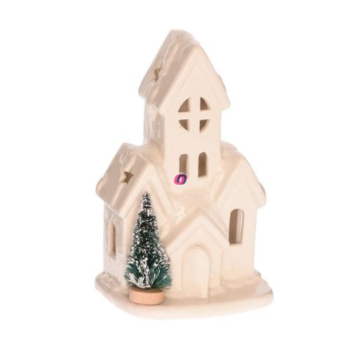 A karácsonyi világító figurák nem csak kiváló dekorációk, hanem renek hangulatvilágítással is szolgálnak! A Templom figura csodás megjelenéssel garantálja a meghitt ünnepi hangulatot és garantáltan központi helyet kap majd a többi ünnepi dekoráció között. A Templom fenyővel LED-es kerámia 9,5x7,7x14cm fehér tökéletes választás a lakás és a kültéri terek látványos feldíszítéséhez.
