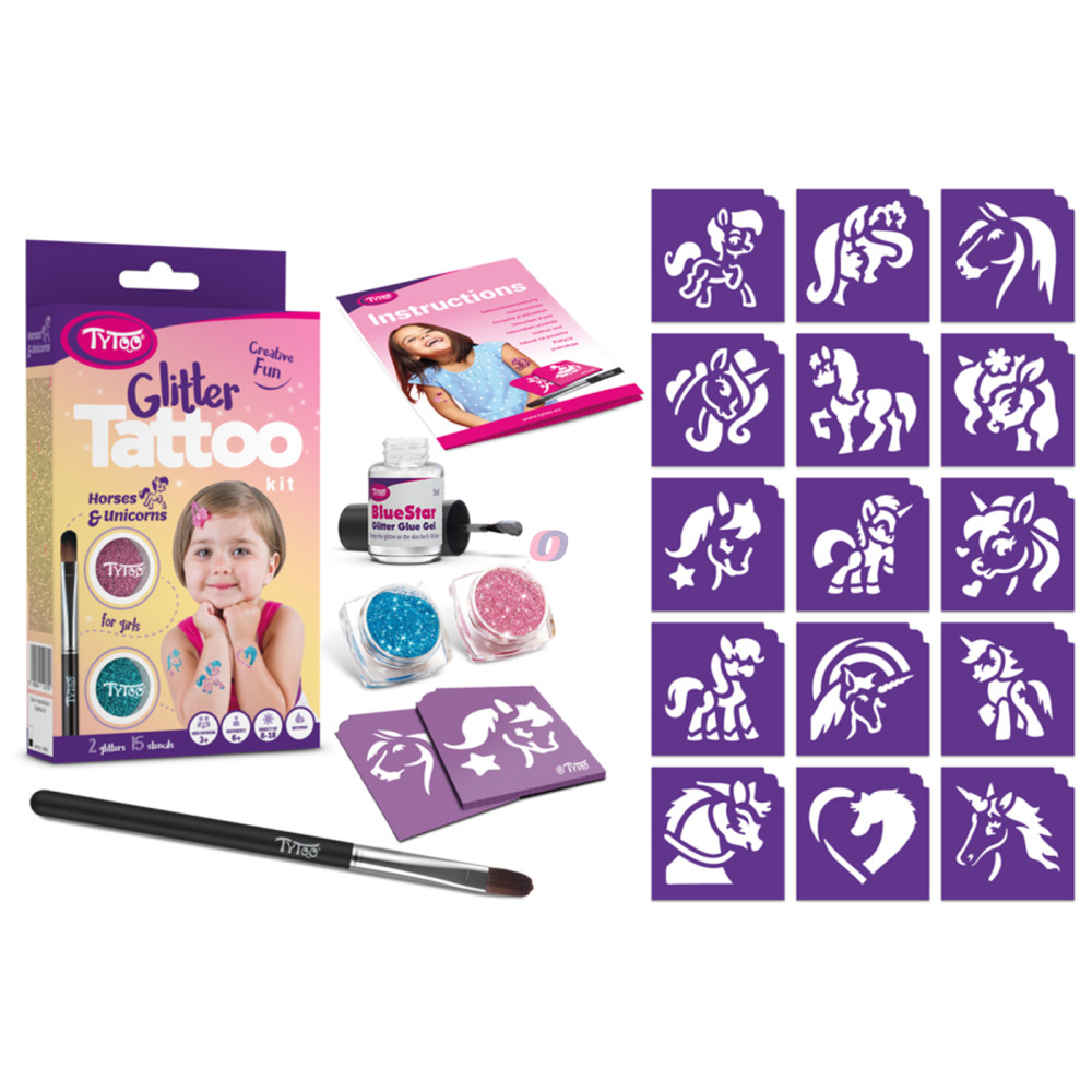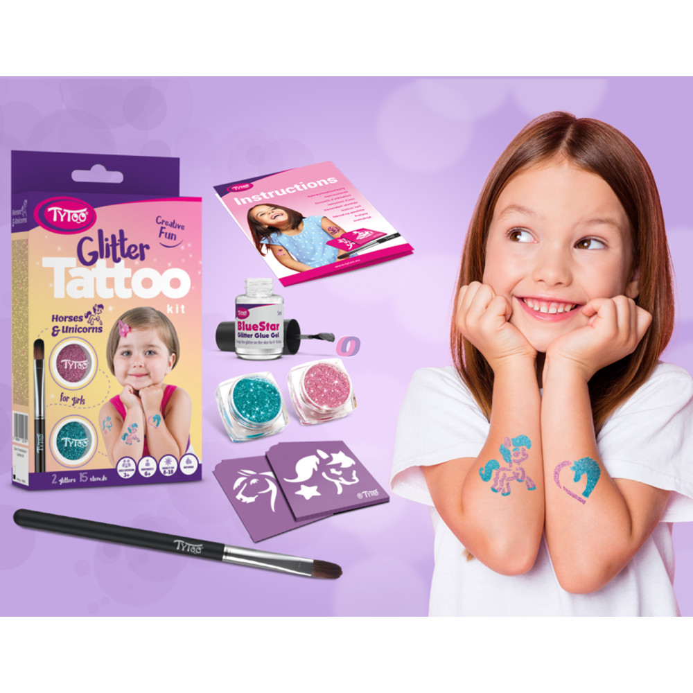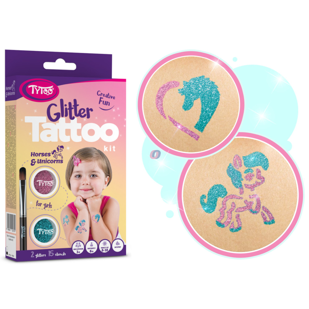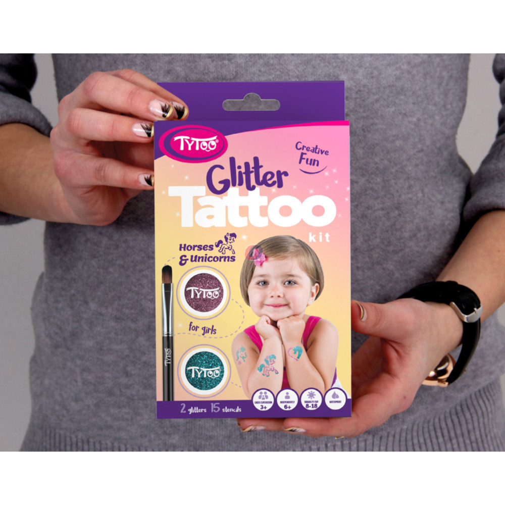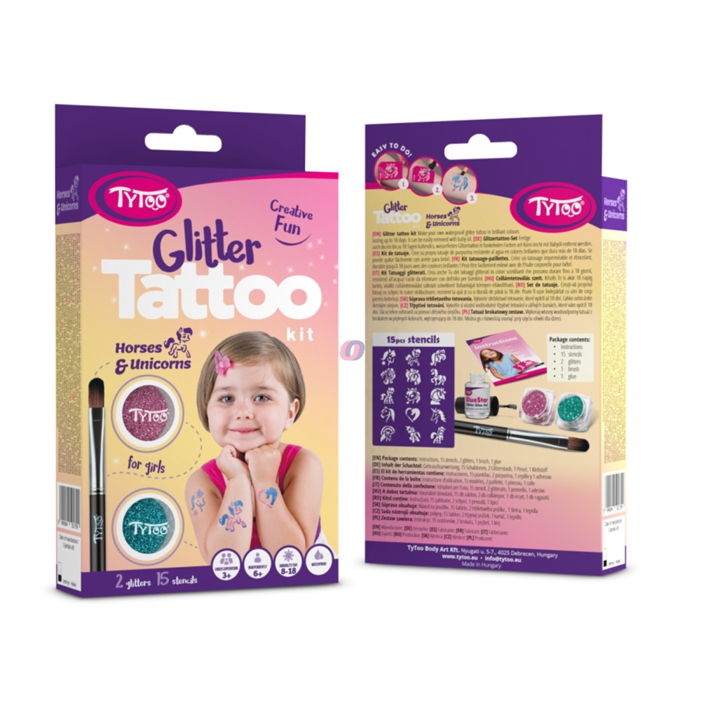 15 db heteken át tartó ragyogó csillámtetoválást készíthet kislányoknak, egyszerűen. A szettben mindent megtalál a tetkók elkészítéséhez. Kifejezetten 3-12 éves kislányoknak tervezték, amelyben gyöngyörű lovas, pónilovas, unikornisos mintákat talál. A TyToo csillámtetoválást a gyermekek is biztonságosan használhatják, ugyanis kozmetikai minőségű anyagokat tartalmaz, ami megfelel az EU szabályoknak. Alkalmazása egyszerű, akár egy 6 éves kisgyermek is el tudja magának készíteni a saját csillámtetkóját. Ráadásul az alkotás közben még a készségeit is fejlesztheti. A sablonok kifejezetten gyermeke pici karjára lettek tervezve. Így akár saját magának is könnyedén elkészítheti az apró szikrázó tetkóit, de közösen szórakozva még jobb móka lehet számára!