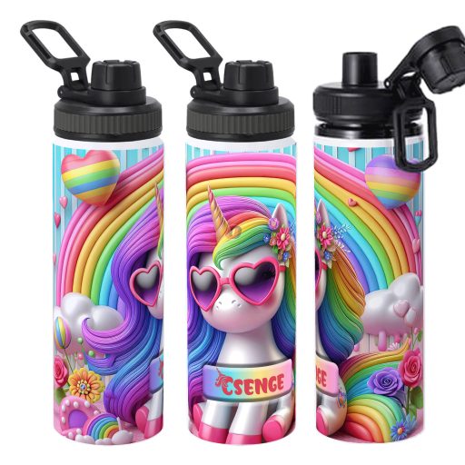 Ez a személyre szabható 3D Unikornisos fém sportkulacs egyedi névvel 750 mlSportkulacs szuper kiegészítője lesz a Halloweennek, vagy bármilyen sporteseménynek, túrázásnak Prémium grafika és anyag. A kulacs teljes felületére felkerül a nyomat!