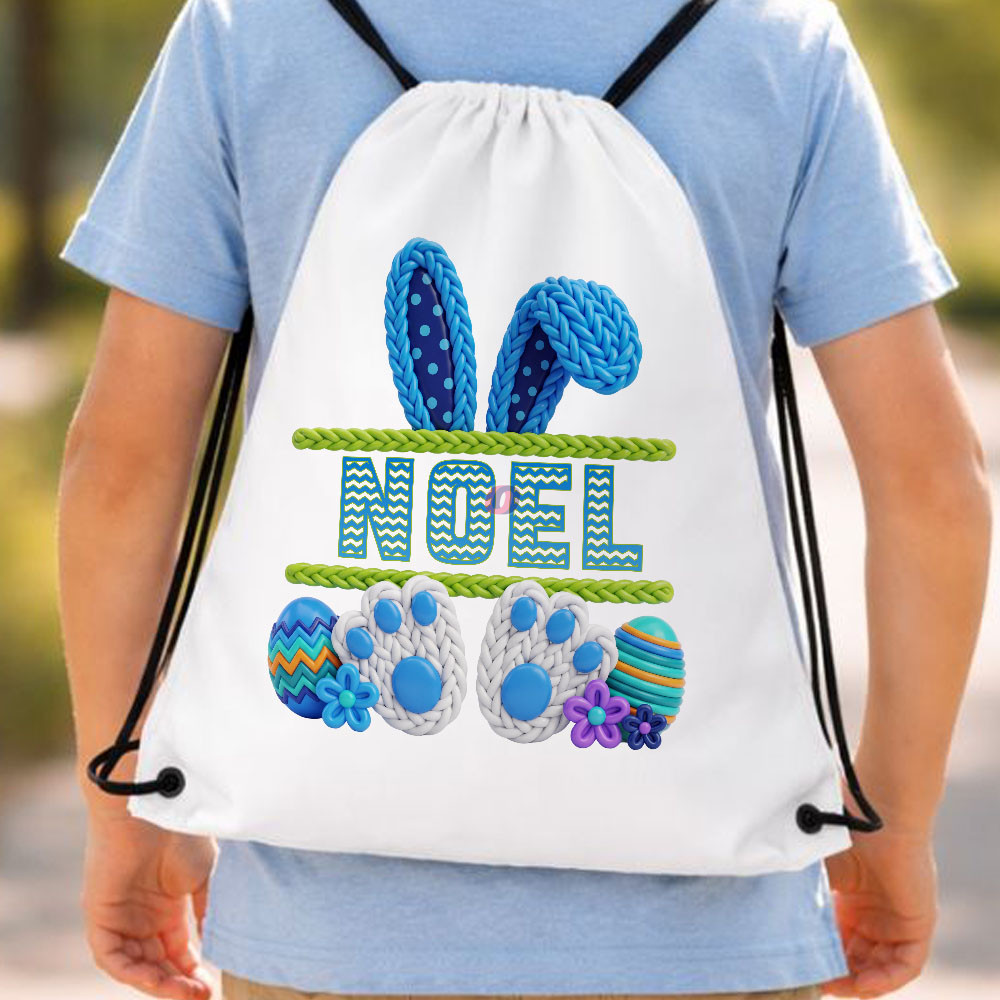 XL Egyedi neves húsvéti szütyő fonott mintával, kék, 30x40 cm. Kiváló minőségű dekorációs kiegészítő, de szuper ajándék is lehet