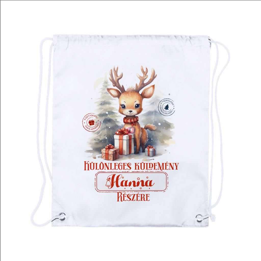 Ez a személyre szabott neves, Szarvas mintás mikulászsákba nem kell aggódni, hogy beleférnek-e az édességek, ajándékok. + hátizsák funkcióval is rendelkezik, így a gyerkőc büszkén hordhatja.