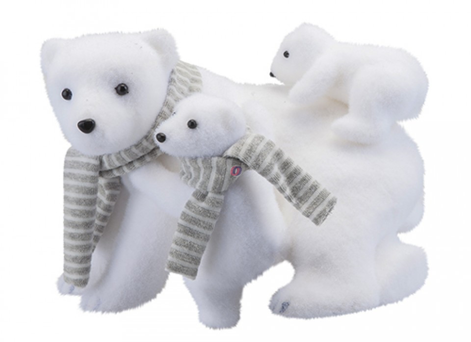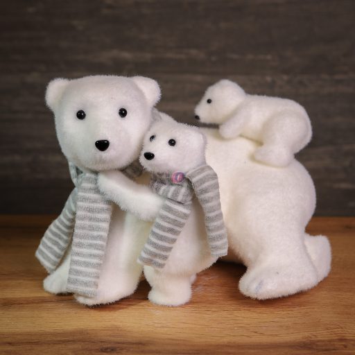XL Karácsonyi jegesmedve család figura fehér, textil 27,5 cm