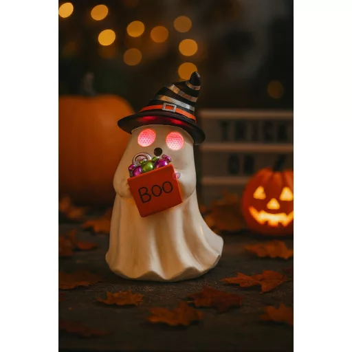 Tedd rémisztővé a kerted vagy teraszod ezzel a látványos, LED világítással ellátott szellem dekorációval! Kétféle változatban kapható, hogy a Halloween dekorációd még izgalmasabb legyen.