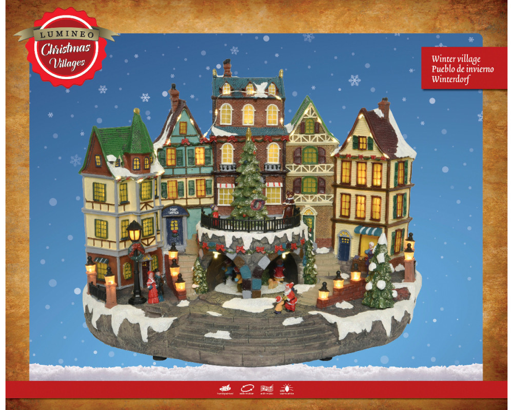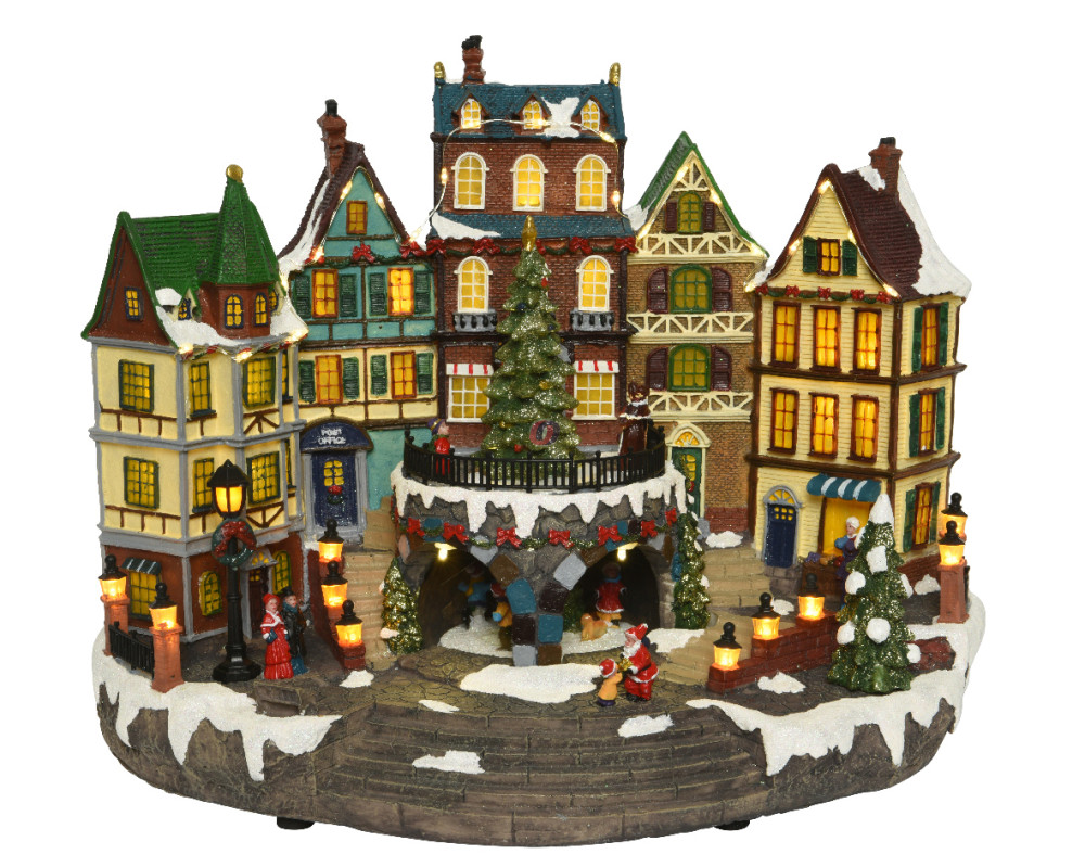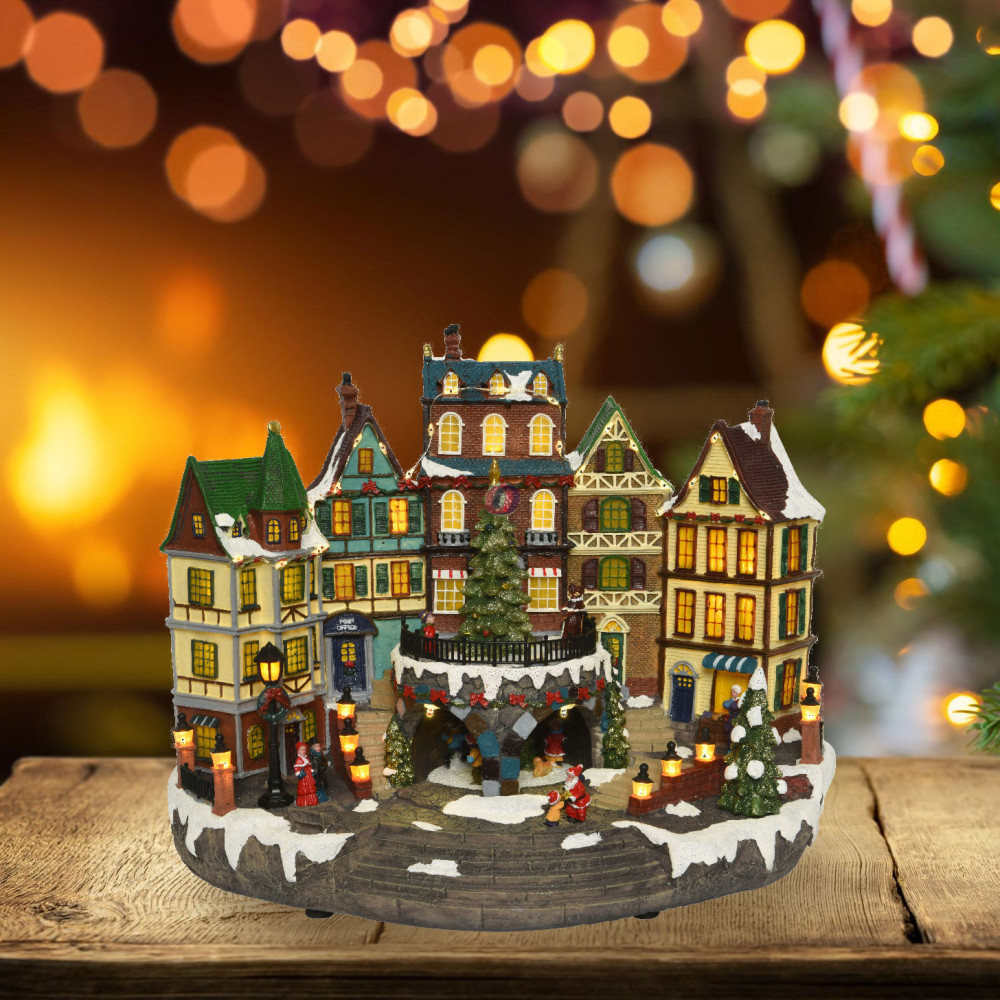 A nagyméretű Luxury Karácsonyi Dioráma "SOUTHERN TOWN" 40 cm választás ajándékba, vagy a lakás és a téli faluk látványos feldíszítéséhez.