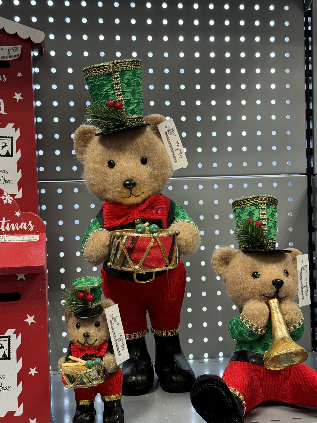 XL Prémium cuki karácsonyi Medve figura dobbal, álló 45 cm barna, zöld tökéletes választás lesz a  karácsonyi dekorációk gazdagításához!