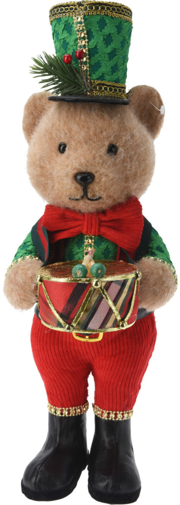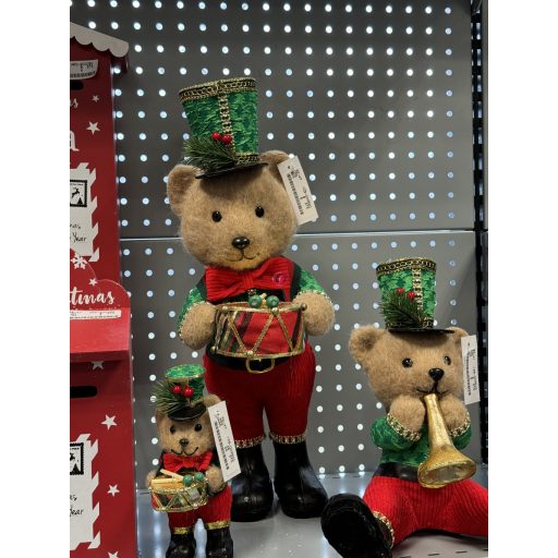 XL Prémium cuki karácsonyi Medve figura dobbal, álló 45 cm barna, zöld