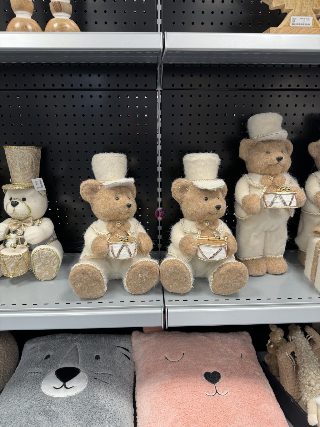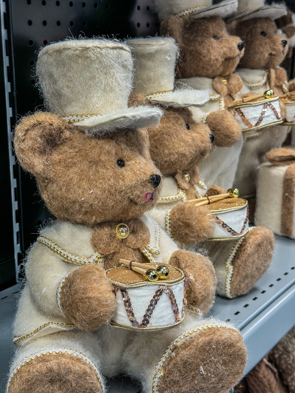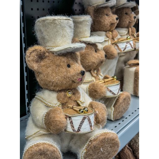 XL Prémium cuki karácsonyi Medve figura dobbal, ülő/álló 41 cm barna