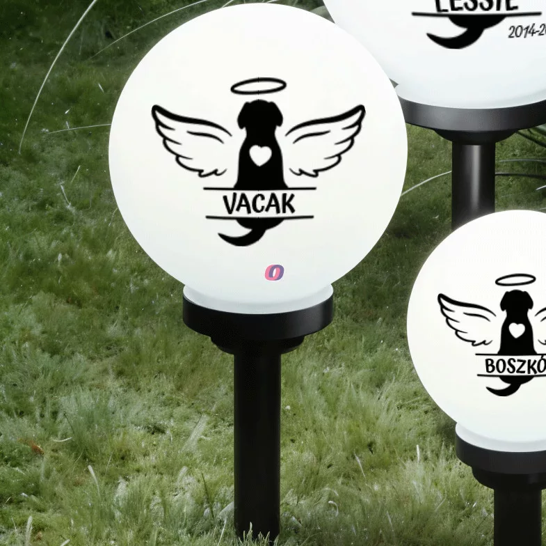 Tegye különlegessé szeretett kisállatai emlékhelyét ezzel a nagyszerű személyre szabható napelemes lámpával.A leszúró tüske segítségével gyorsan és egyszerűen el tudja helyezni. Választhat, hogy szárral vagy szár nélkül telepíti a lámpást. Amint besötétedik, a lámpa automatikusan bekapcsol, napkeltekor pedig kikapcsol. Napközben a szolárcellák a napenergiát árammá alakítják és az akkumulátorban eltárolják.