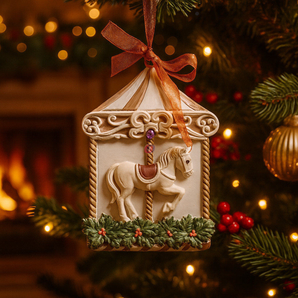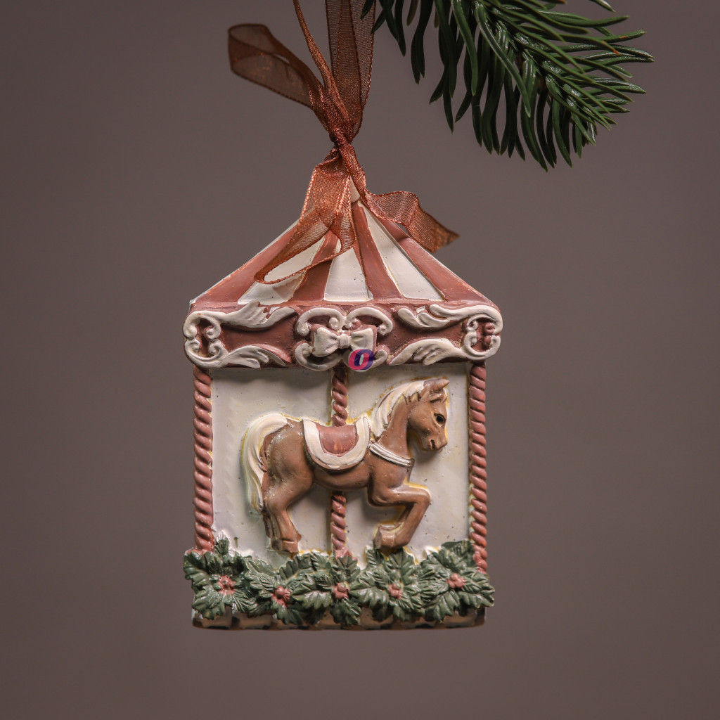 A mézeskalács körhinta észletgazdag kidolgozással rendelkezik, színes karácsonyi díszekkel, ablakokkal és ajtókkal, amelyek a hagyományos mézeskalács épületre emlékeztetnek.