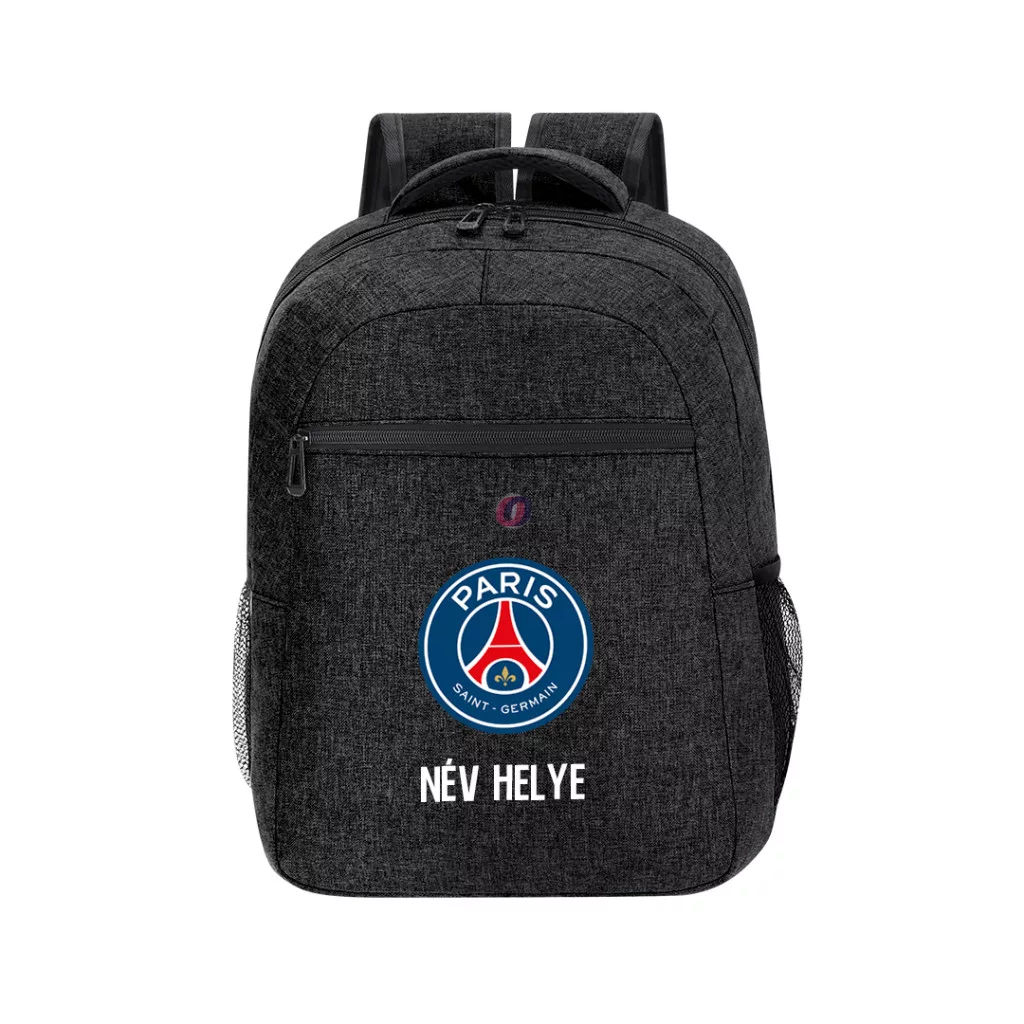 Paris Saint-Germain hátizsák személyre szabható egyedi névvel és számmal fekete színben, ami szuper kiegészítője lesz a mindennapoknak, túrázásoknak, sport tevékenységeidnek, de akár Suliba is viheted Méretének köszönhetően. Prémium grafika és anyag.