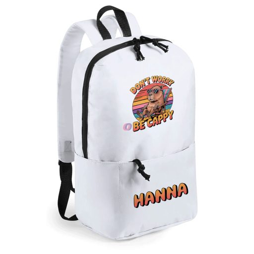 Személyre szabható Capybara Hátizsák, egyedi névvel, fehér 23x36 cm