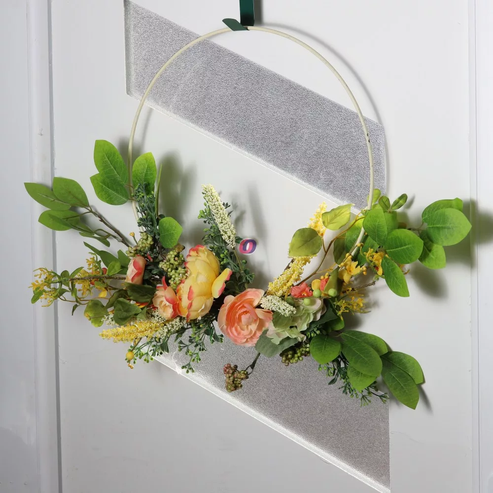 Tavaszi ajtódísz Selyemvirág koszorú peoniával, hortenziáva 60cm zöld, narancs kedvező áron, gyors szállítással, prémium kiszolgálással.