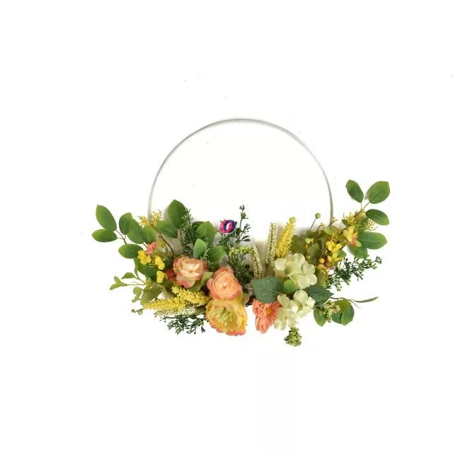 Tavaszi ajtódísz Selyemvirág koszorú peoniával, hortenziával 60cm zöld, narancs