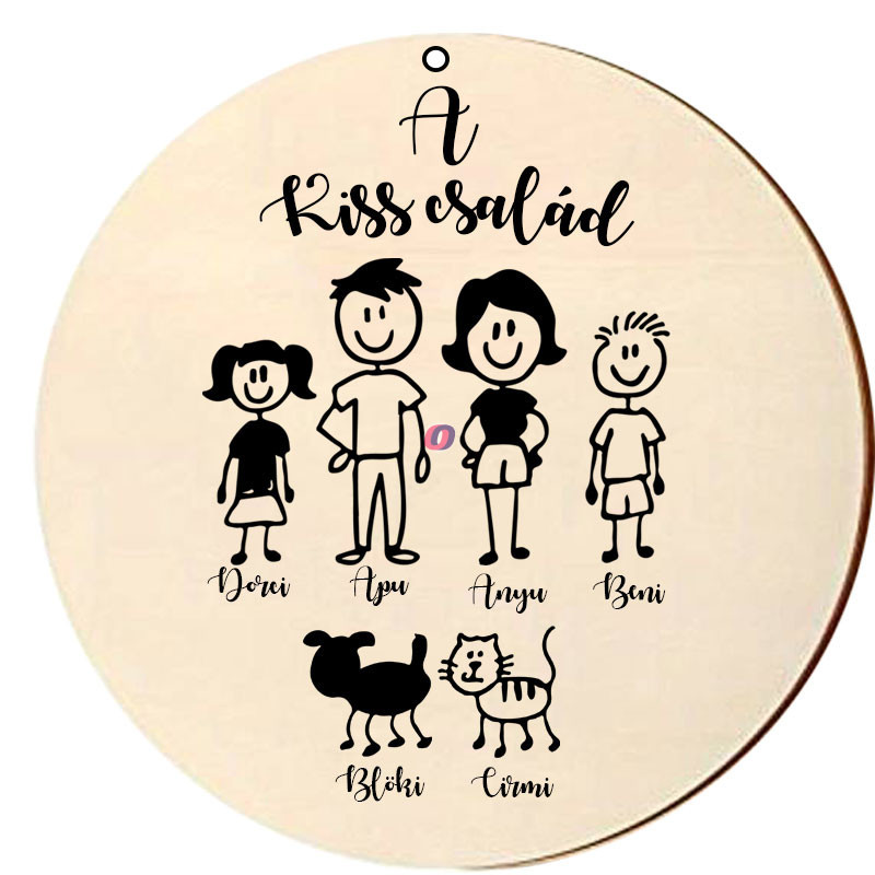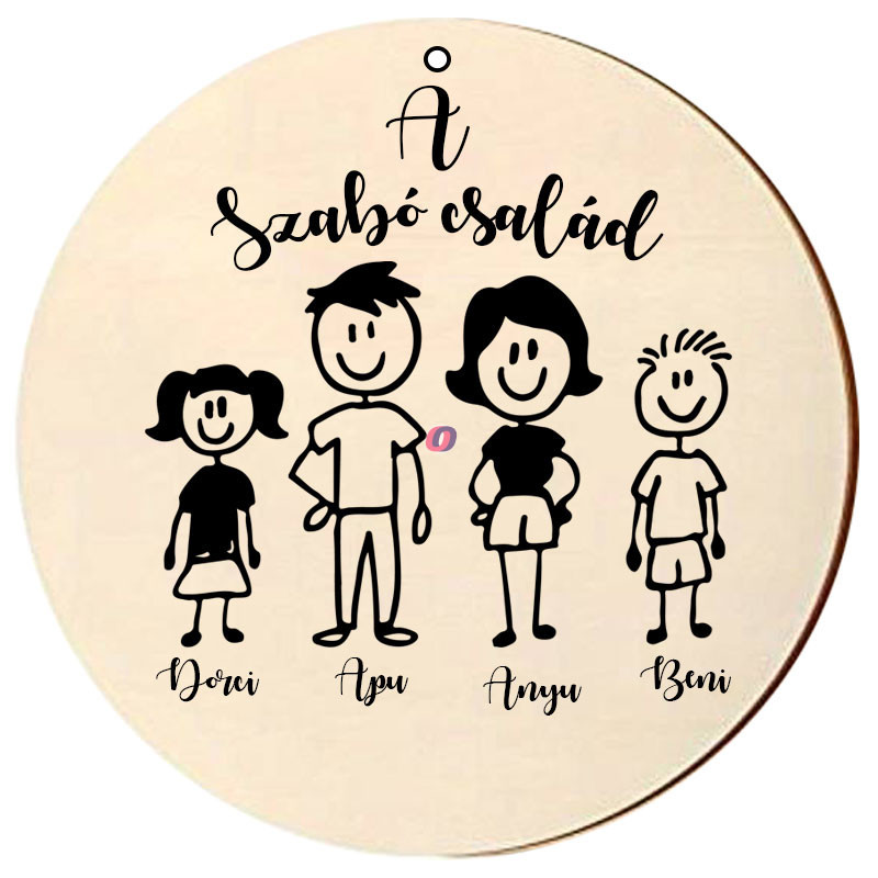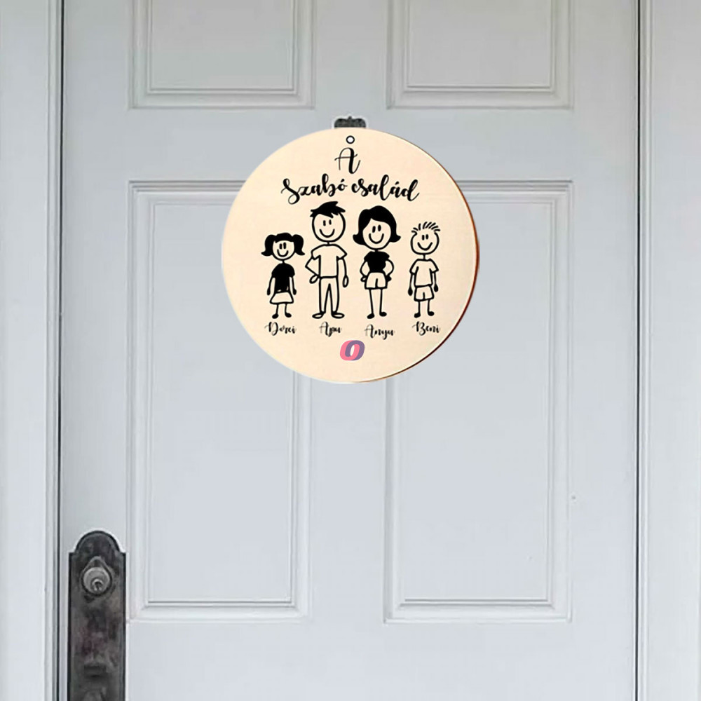 Stílusos, egyedi családi névvel ellátott üdvözlő tábla, mely kiváló ajtódísz is lehet. Ideális a bejárati ajtóra akasztva, vagy a bárhol a lakásban. Anyaga natúr fa.