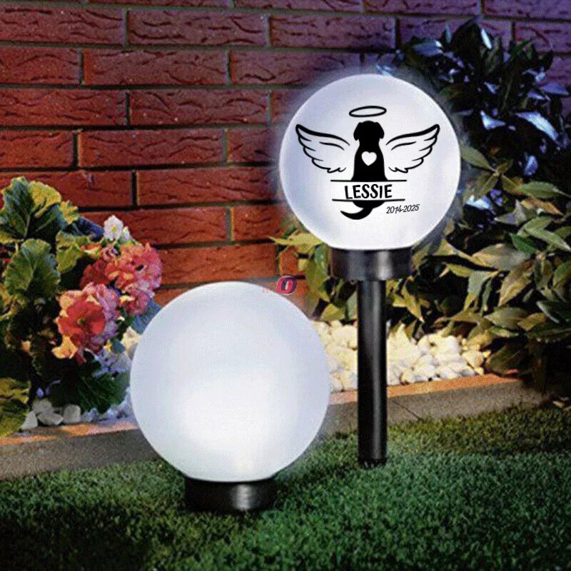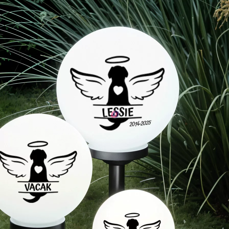 XL Személyre szabható napelemes lámpa kutya emlékhely Gömb 20x50 cm. Kiváló minőségű dekorációs kiegészítő kiskedvencek emlékhelyére