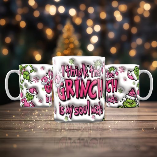Grincs mintás karácsonyi bögre 3D pufi hatású "Grinch soulmate"