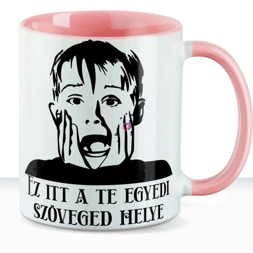 - Egyedi feliratos karácsonyi bögre "Reszkessetek Betörők Kevin" pufi hatású rózsaszín bögre
